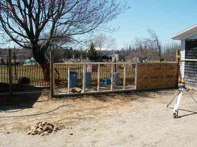 I started with 4x6 pressure treated posts set a minimum of 4' in the ground to prevent frost heave. The holes were dug with a backhoe to give me room enough to make sure everything was straight, square and plumb. The long side of the fence is 20' long, and for aesthetic reasons, I did not want a post in the middle. To prevent the fence from sagging under it's own weight, a 4" x 1/8" C-channel was fastened to the bottom of the posts. The center of the channel is supported by a 4x4, also 4' in the ground.