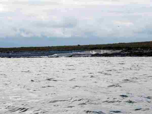 With everyone safely aboard, and a skiff in tow just in case, we headed out to the island. The day was a bit overcast, but the wind was down and the seas had flattened out after two straight weeks of heavy weather.