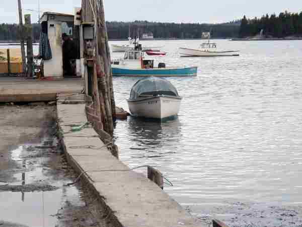 We snuggled up to the rocky shore (now you know where the colorful phrase "The Rockbound Shores of Maine" comes from...) and Donna hopped ashore as we passed the sheep to her. They weren't long heading up over the hill to see what was on the other side.