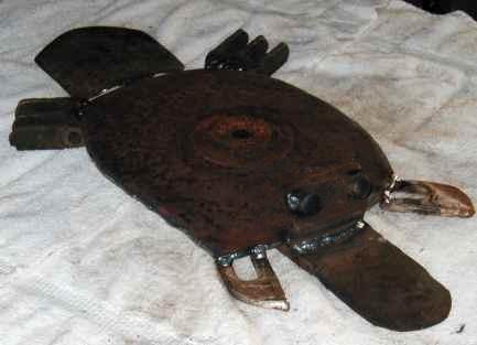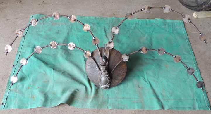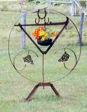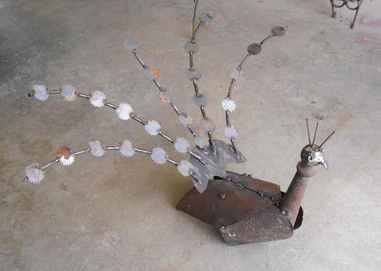 These are some samples of what I call Yard Art. They are constructed from bits and pieces of old agricultural implements, such as disk harrows, drag harrows, hay rakes, and whatever I find in my junk pile. I'm considering making a few for sale.